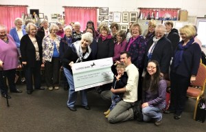 Pictured above are members of the choir at their practice on Thursday March 30th with President Thelma together with choir member Audrey, (in the pink scarf) her grandson Jayden and his parents, Paul and Sandra, representing the charity.
