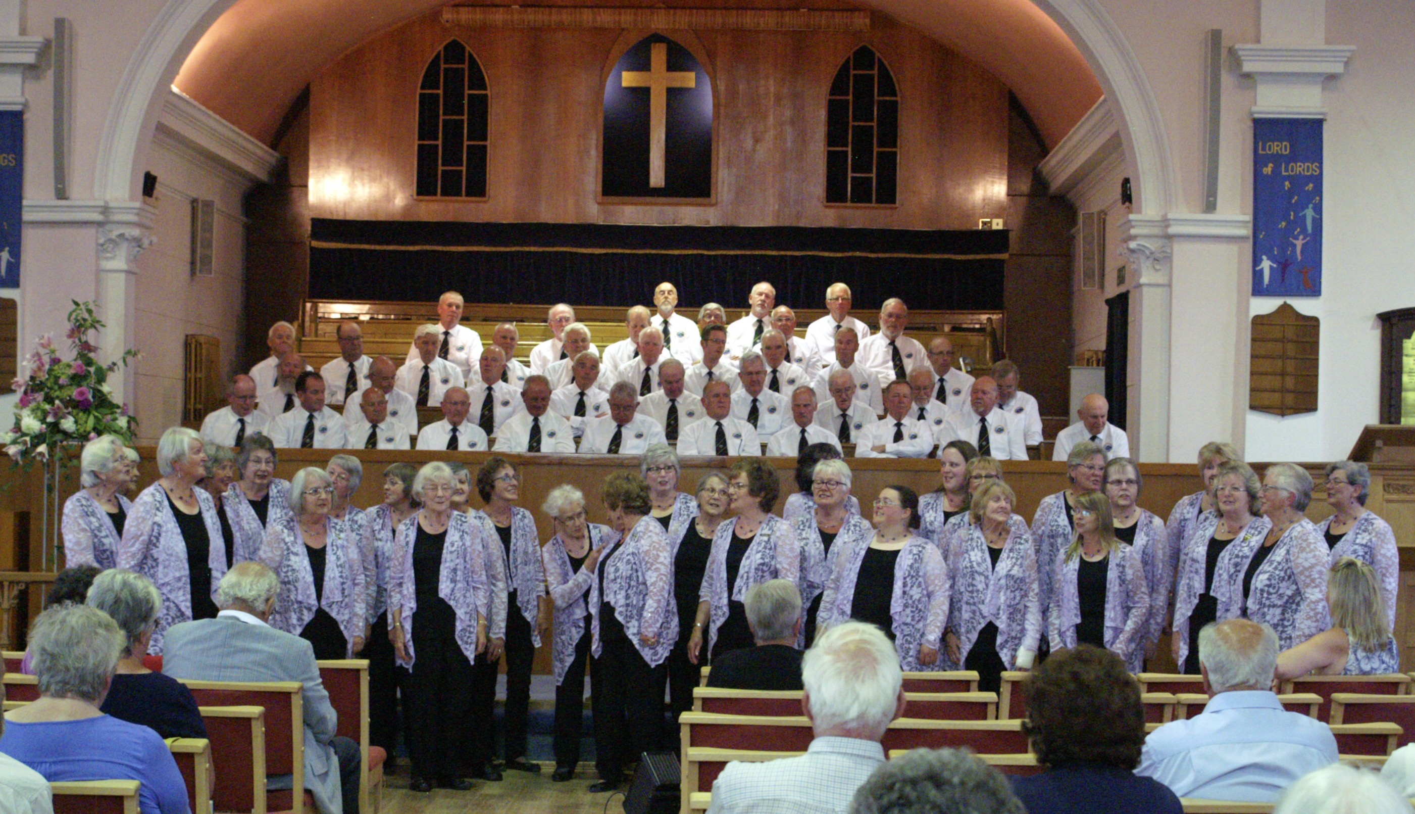 It had to be the hottest day of the year when we performed in a joint concert with Marazion Apollo MVC. Both choirs, as well as the audience, were positively glowing with the heat, the blinding sunshine through the stained glass windows of Falmouth Methodist Church, and the effort to sing in such conditions. But the professionalism of everyone prevailed!